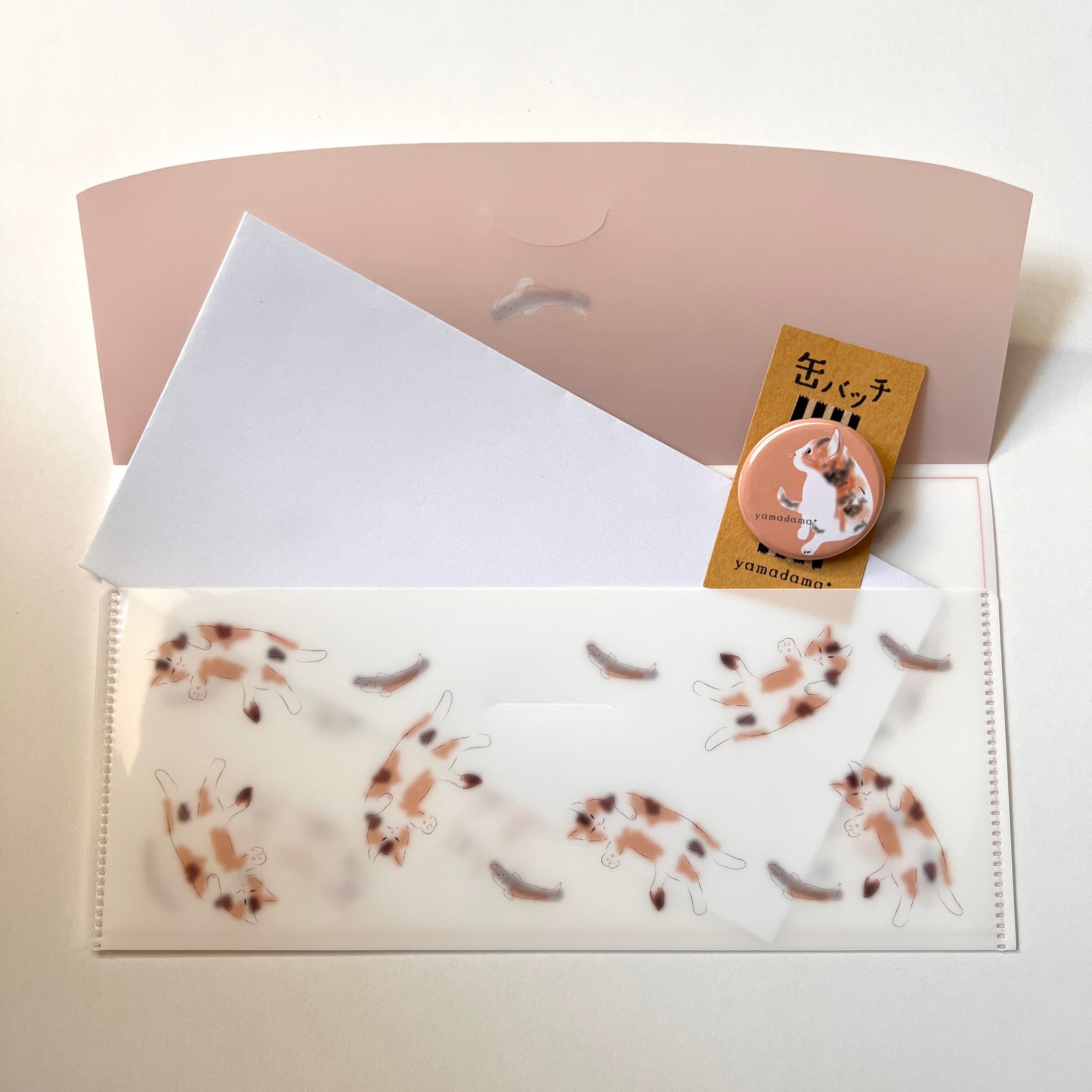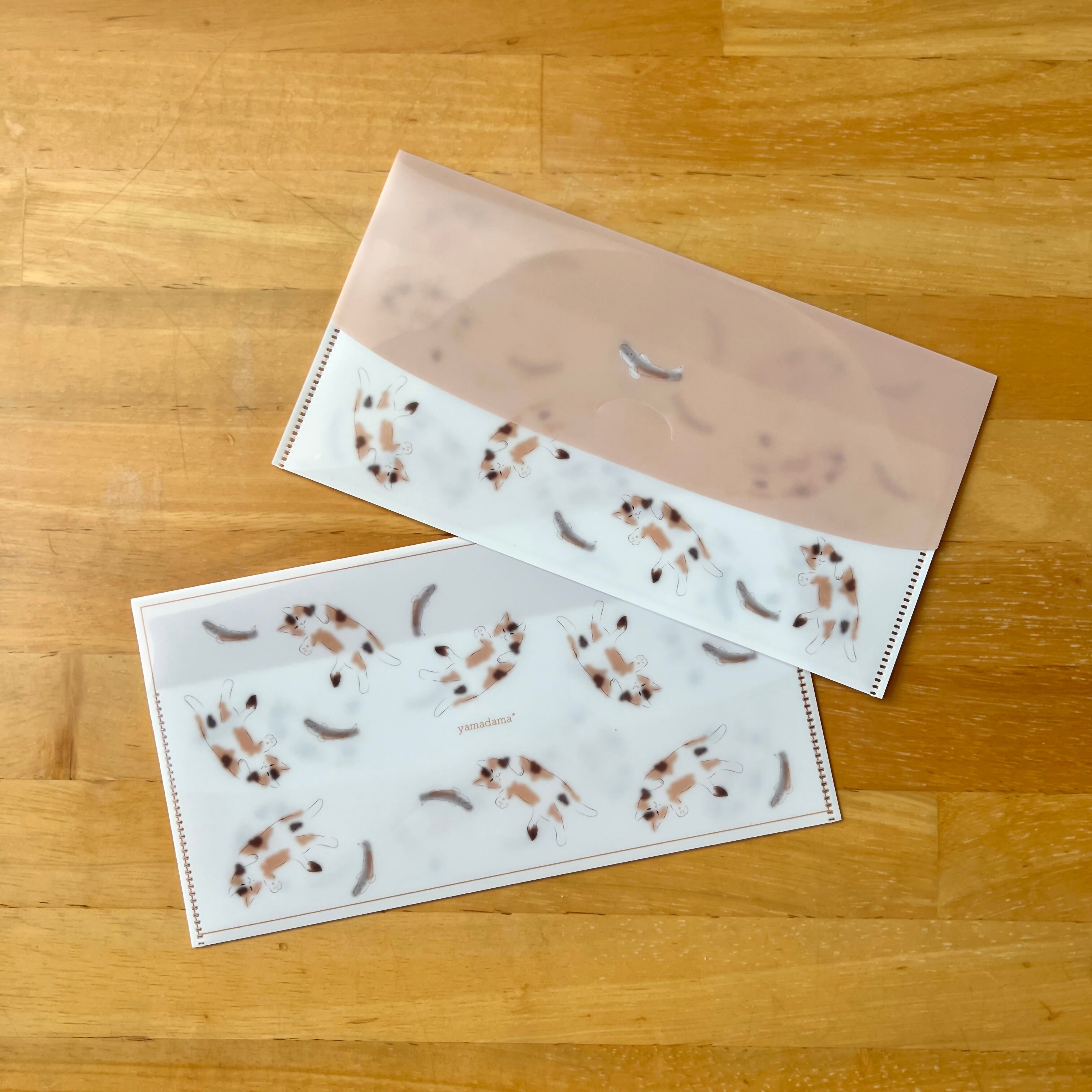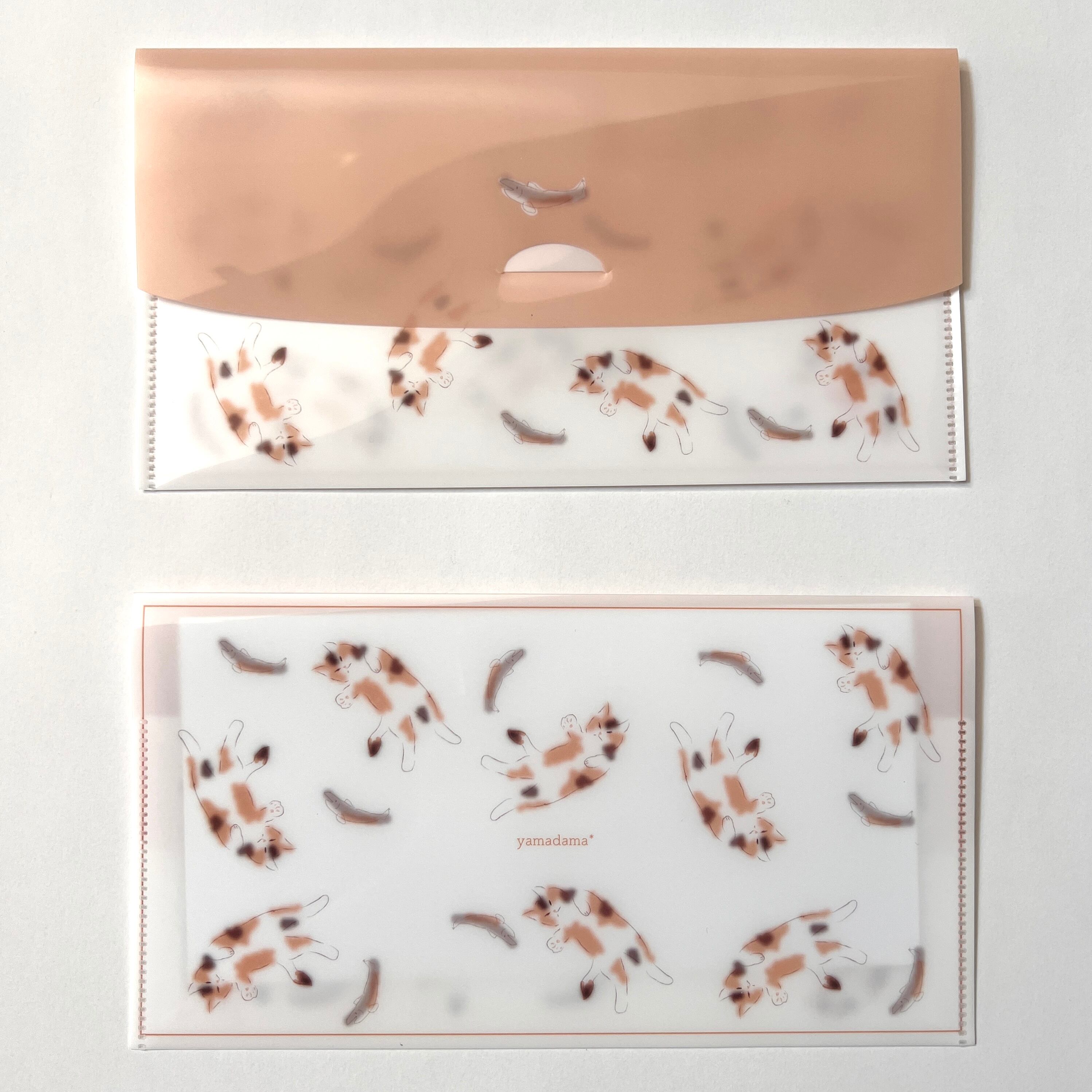 三毛猫柄、蓋付きのクリアファイル素材でできたチケットケースです。